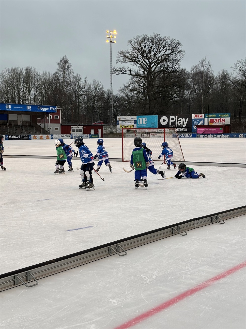 Obligatorisk utrustning förutom skridskor är hjälm med galler och halsskydd. Tänk på att klä barnen varmt och efter väder!
