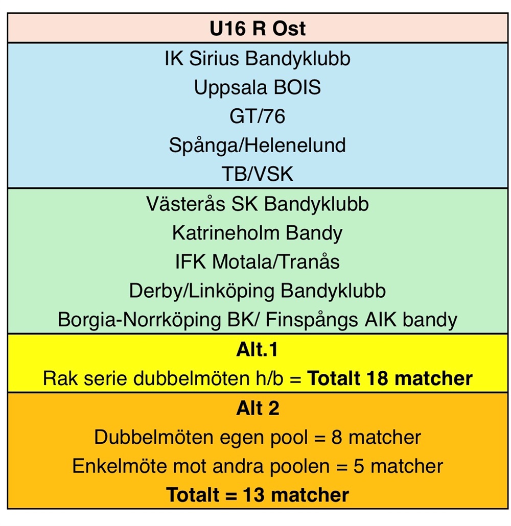 Det 10st lag anmälda i P16 ost (från Vetlanda i söder till GT76,Stockholm i norr). Vi har inte fått schemat för serien ännu.