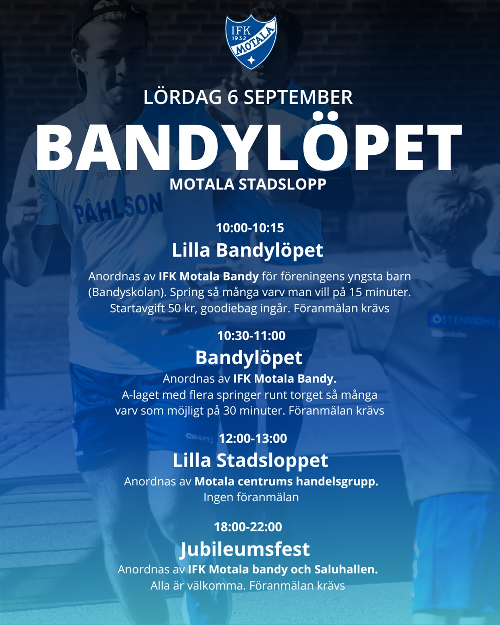 Hoppas så många som möjligt av föreningens ungdomar kan vara med på loppet! Är du inte medlem i IFK Motala Bandy men ändå vill springa? Självklart går det bra!