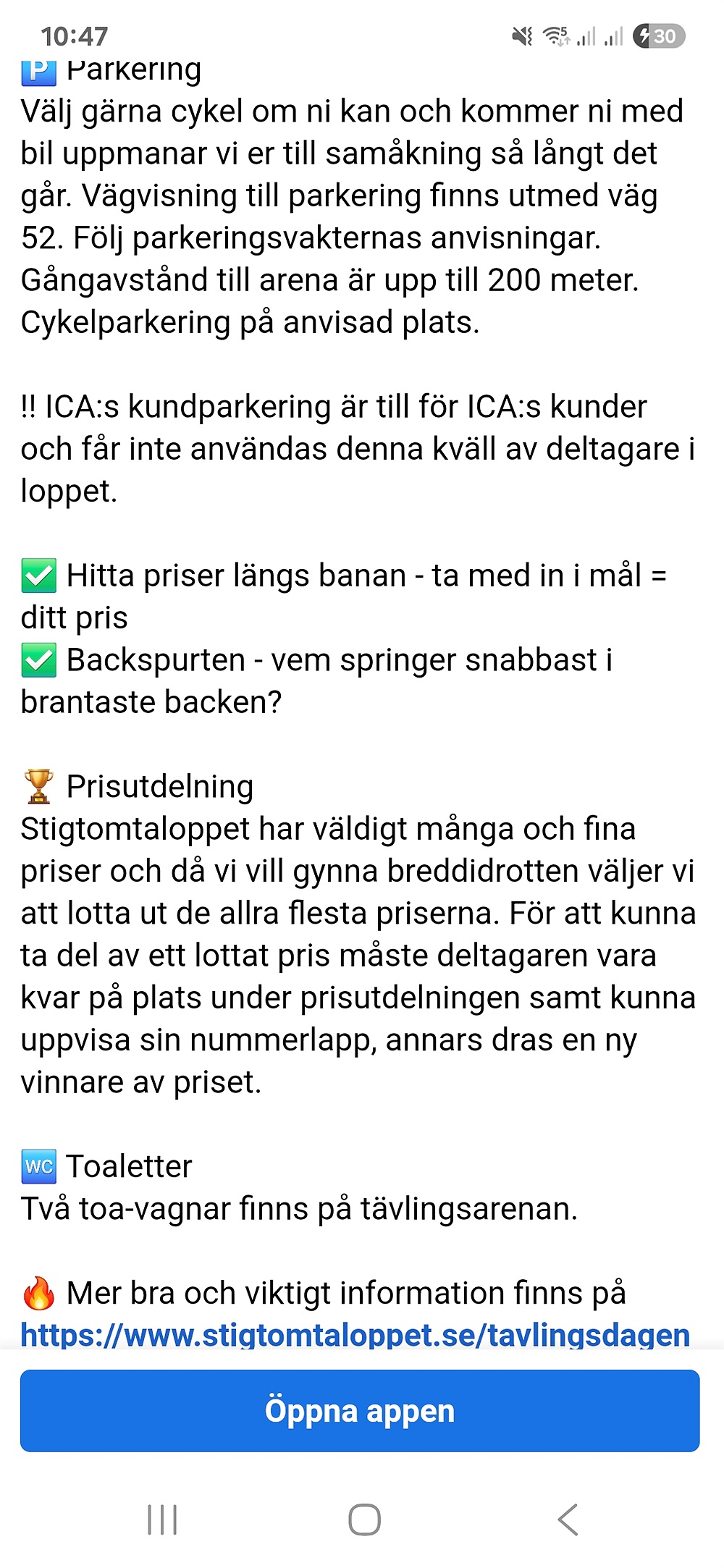 Via denna länk finner ni mer information https://www.stigtomtaloppet.se/tavlingsdagen?fbclid=IwY2xjawKWfe9leHRuA2FlbQIxMQABHlCvx8C3bYeIQRd5TOPjhV6zPmcc1_gHA-R1Z6oc3O8bow5cIxxmk__CGgJ6_aem_xnK4Ptop8_28ta_02HpoSQ