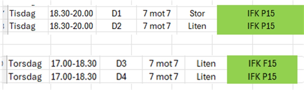 Från och med nästa vecka tränar vi på naturgräs, vilket innebär nya träningstider: