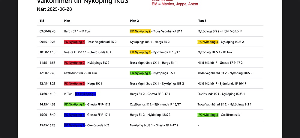 BLÅ (samling och uppvärmning med Tristans pappa och vår lagledare Anton, Adolf eller Martins eller Jesper är med och coachar)