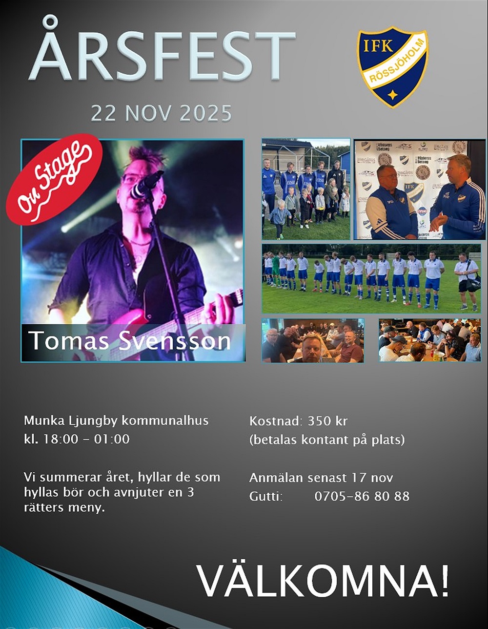 Alla föreningens medlemar är välkomna och vi blir glada om ni tar med er vänner familj o bekanta för att göra årsfesten till en minnesvärd kväll.