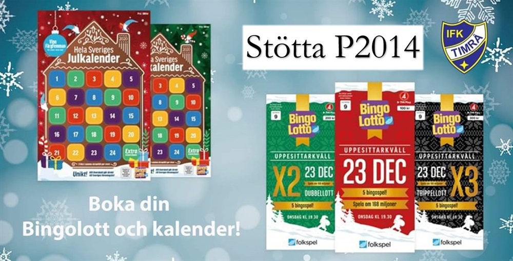 Så är det dags för årets försäljning av julkalender och Bingolotter till uppesittarkvällar den 23/12 och 31/12