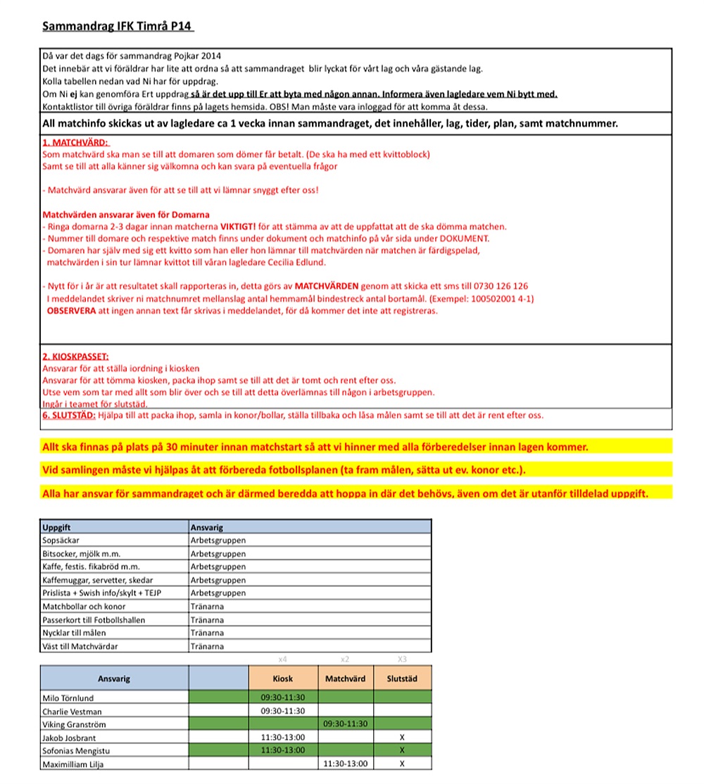 Nu ligger arbetsuppgifter för höstens sista sammandrag ute!