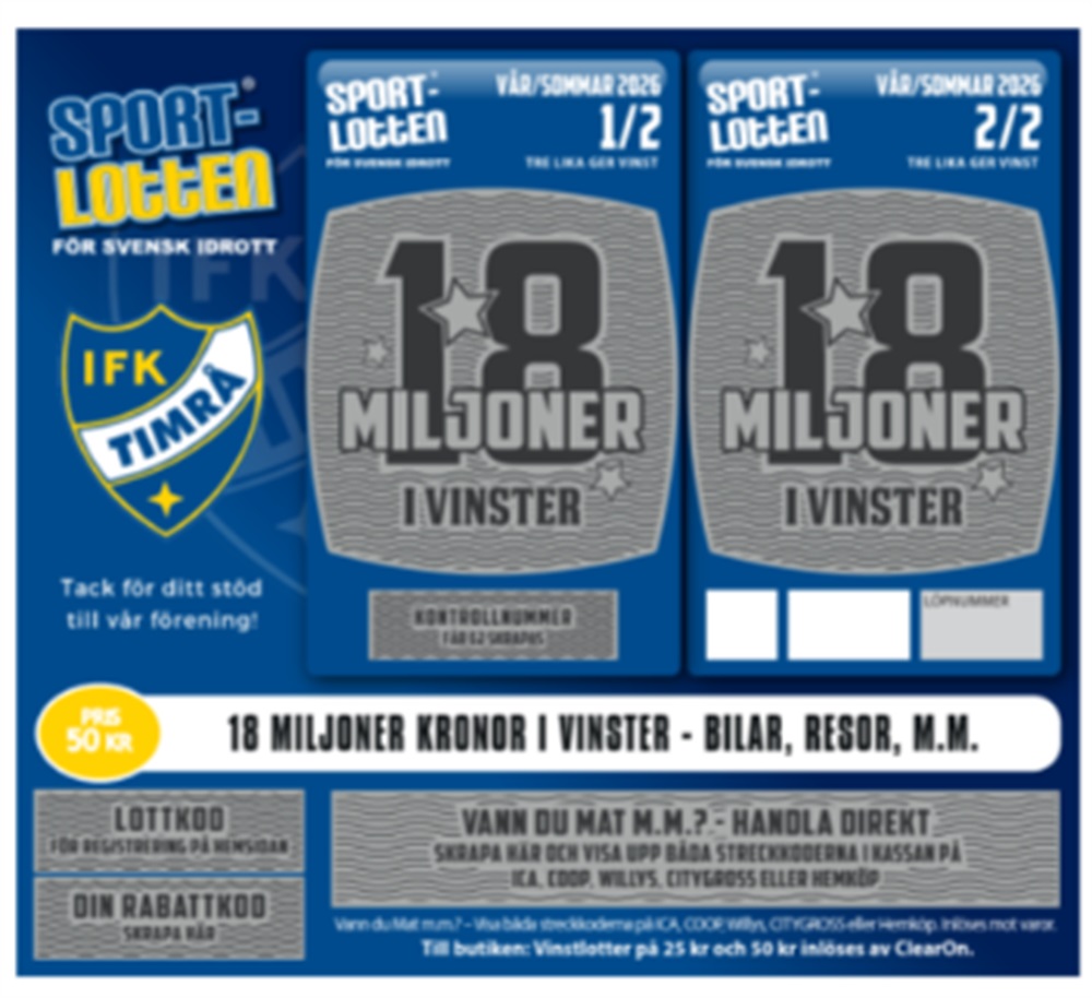 · 25 kr - 50 kr - Handla direkt. Skrapa fältet "VANN DU 25 KR - 50 KR?" och visa upp lotten i kassan när du handlar. Vinsten löses in mot varor på ICA, COOP, Willys, CITYGROSS, eller Hemköp över hela Sverige.