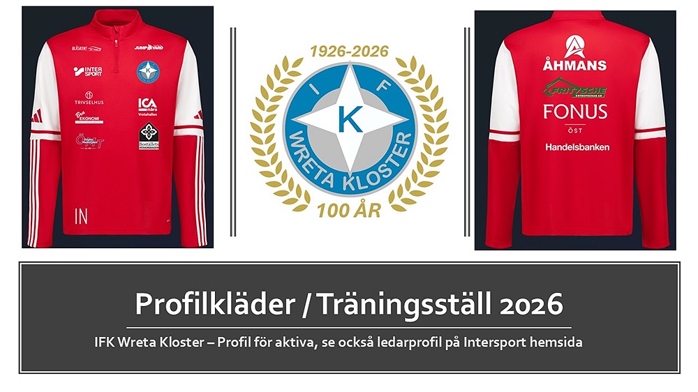 IFK Wreta Kloster som förening kommer även under säsongen 2026 att subventionera inköpet av träningskläder till de ledare som är medlemmar i föreningen. Vi kommer att via en separat information informera ledarna i föreningen om de förutsättningar som gäller, hantering av beställning av träningskläder samt hur subventioneringen går till (för övrigt samma upplägg som förut).