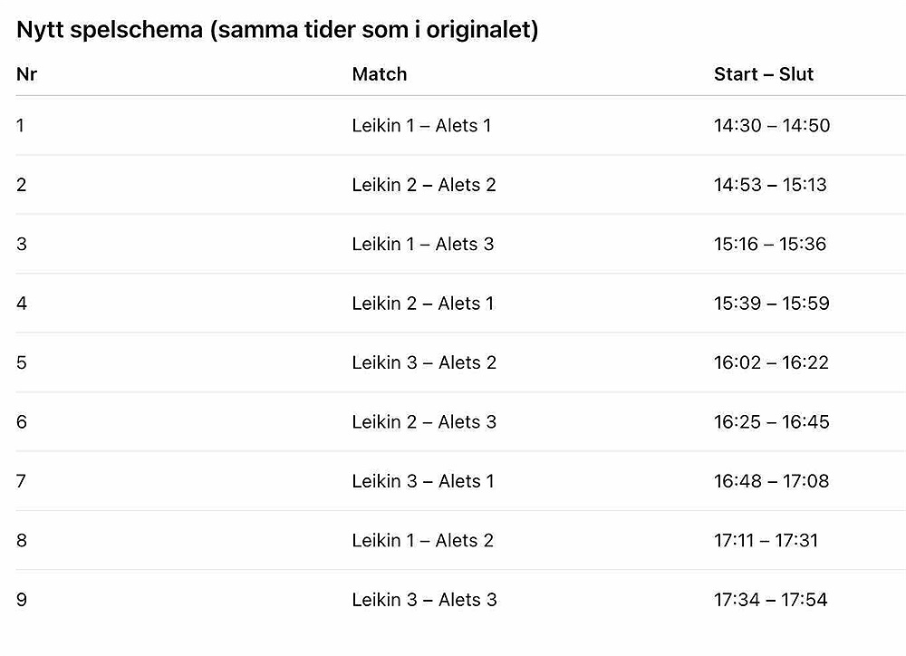 Hej alla! På söndag är det dags för poolspel mot Alets. Vi kommer med 3 lag. Matchspel är 2*10 minuter. Samling kl14:00 på Östergårds idrottshall.