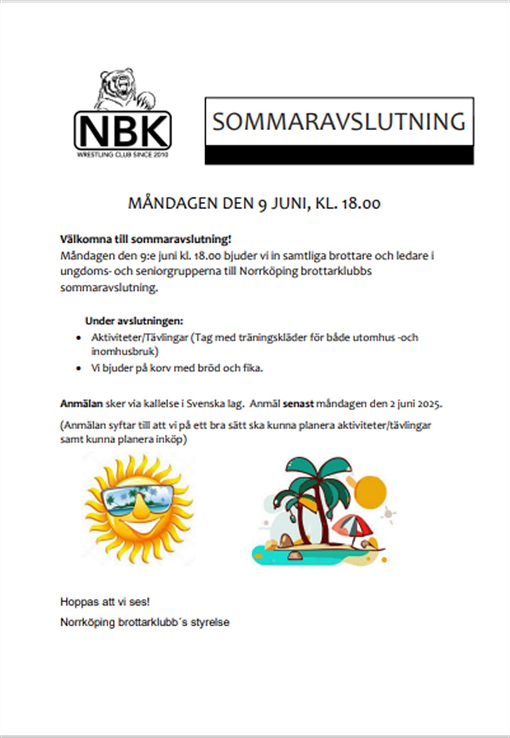 Måndag, kl.18.30-20.00 Möjlighet till matchpass. (Brottare kallas)