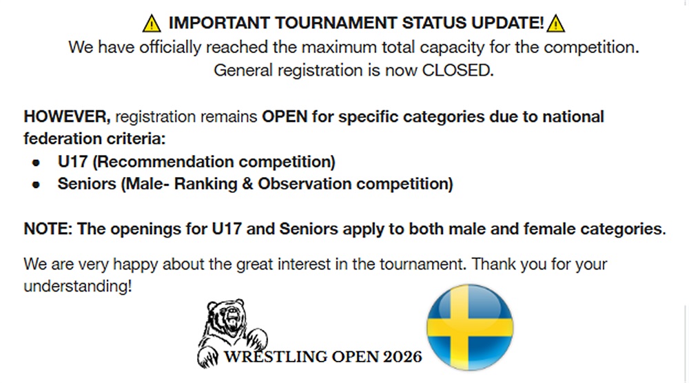 Those of you who have registered wrestlers can still update information on them and unregister by emailing norrkopingsbrottarklubb@gmail.com with changes.