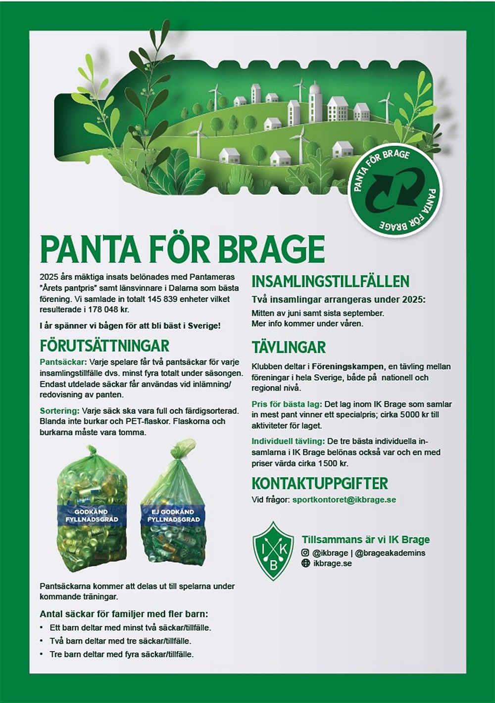 Saknar ni pantsäckar finns det att hämta ut på sportkontoret som är beläget vid Borlänge Energi Arena.