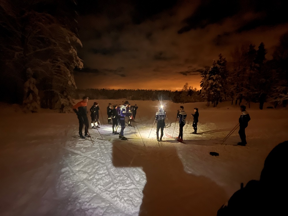 På förra veckans snöpremiär var vi ett stort gäng på olika nivåer. Medtag pannlampa till även denna vecka. Vi kör troligen mest ute på ängarna.