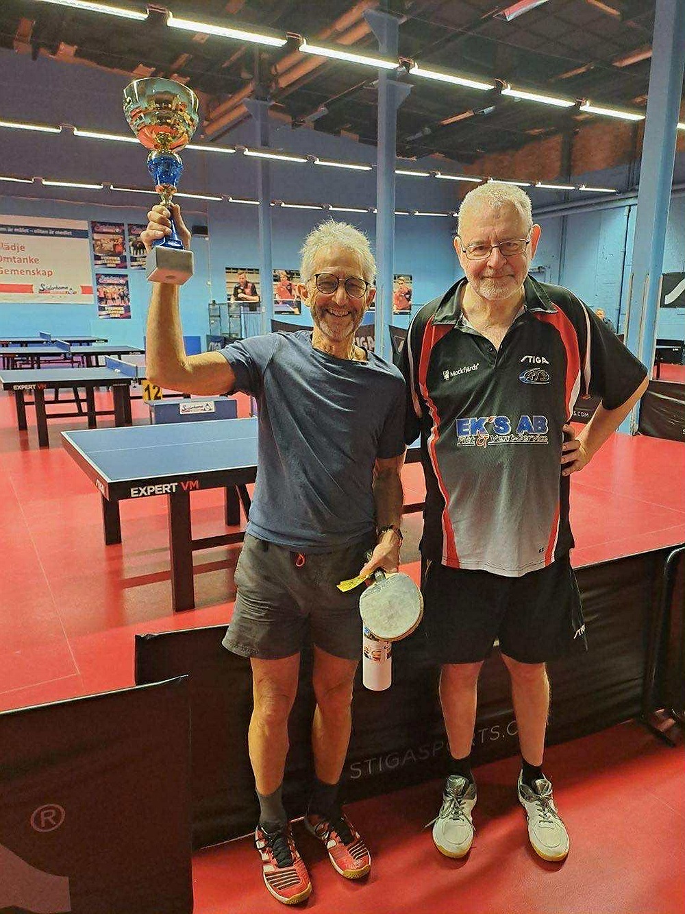 Våra veteraner Bo Frank och Sten Carlson har varit och spelat Hälsingecupen i Söderhamn för veteraner 65+. 16 lag ställde upp och matcherna spelades i lagform, en singel var samt en dubbel per match. Tävlingen avgjordes i poolspel med 4st pooler. Sten och Bosse vann sin pool enkelt och gick därmed vidare till slutspel. Där visade sig våra "gubbar" vara oslagbara och lyckades ta hem hela tävlingen efter seger över Färila i finalen! Sten fick matchkvoten 5-1 och Bosse stabila 6-0. I dubblarna blev resultatet klara 6-0. Starkt jobbat "gubbar"!