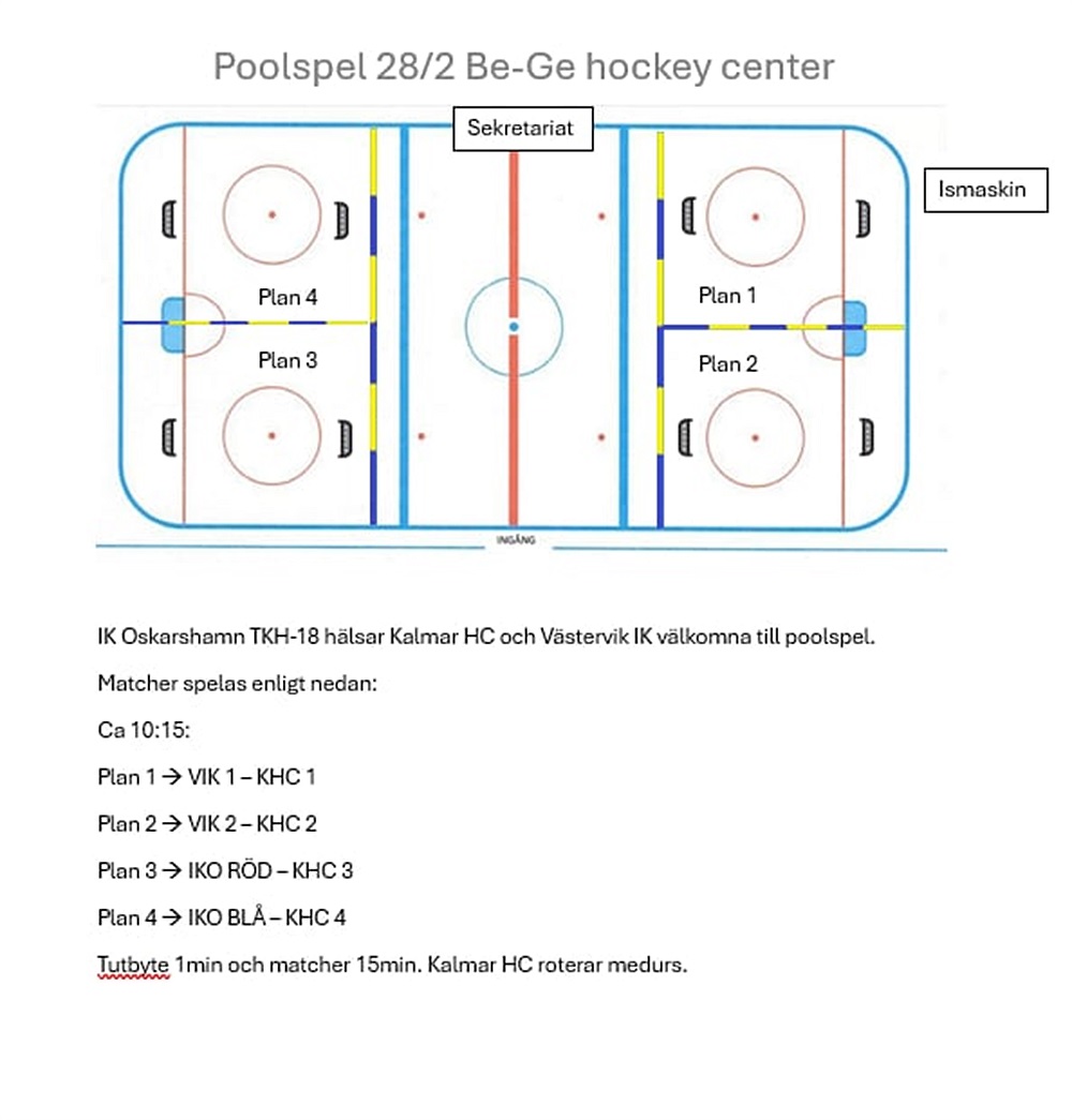 Lag Röd och Blå samling i Be-Ge Hockey Center klockan 09.00.