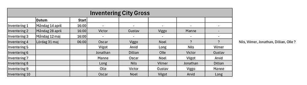 | 24 /8 | 14:00 | 13:00-16:00 | Nils | Noel |