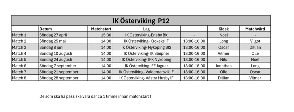 Då vi flyttat på en match kommer här ett uppdaterat kiosk- och matchvärdsschema: