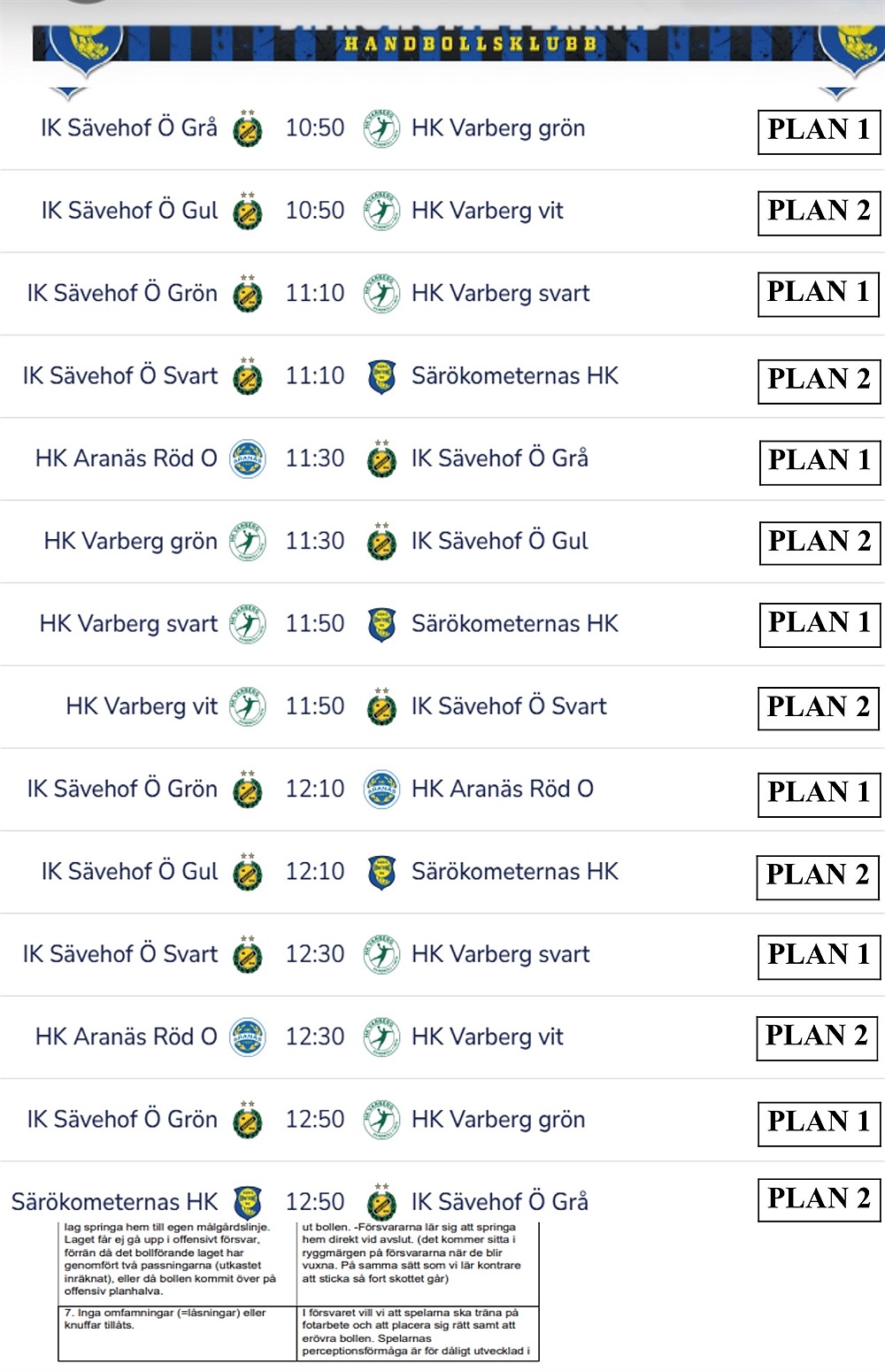 Alla lag samlas 10:20. Detta då Särökometerna har gemensam samling och uppvärmning kl 10:30 med alla föreningar och lag. Försök hålla tiden!