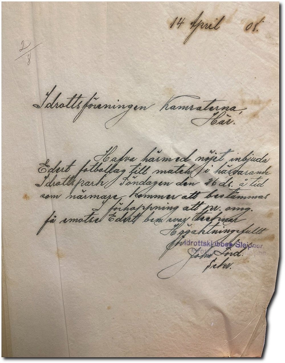 ...1909 mötte Sleipner sitt första internationella motstånd då Magdeburger Fussballclub Victoria från Tyskland var på besök.