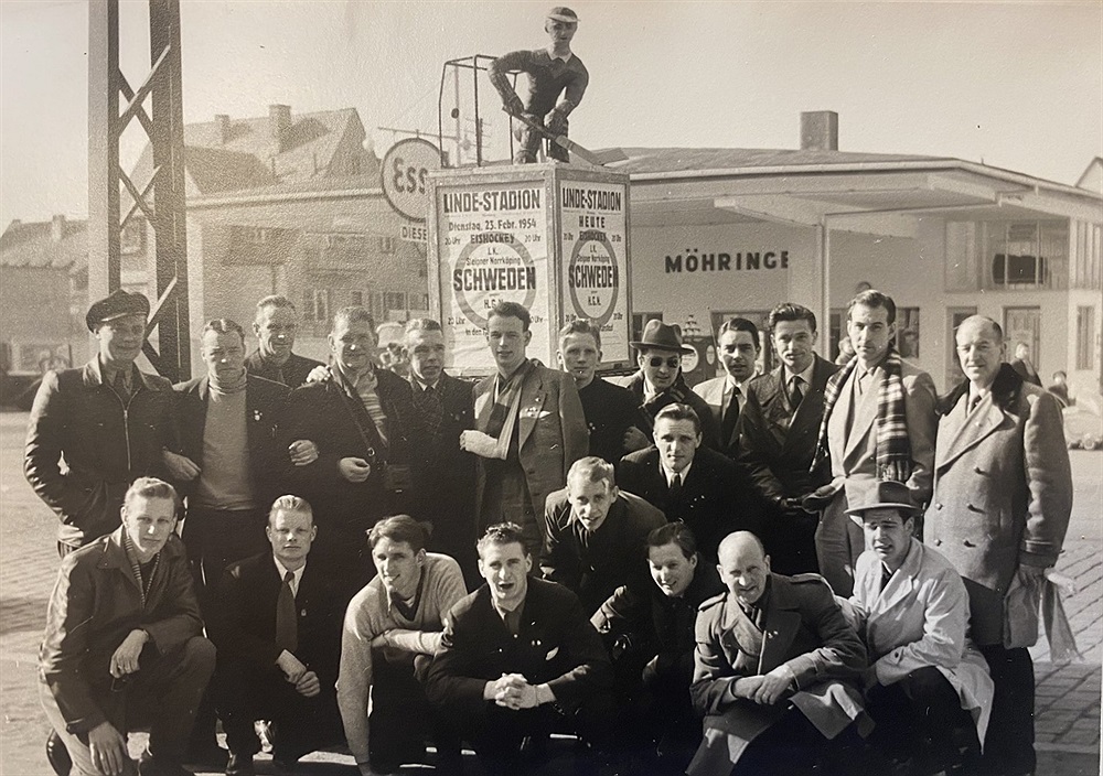 Sleipnertruppen inför matchen mot Die Hockey-Gesellschaft Nürnberg, HGN, i Nürnberg 1954.