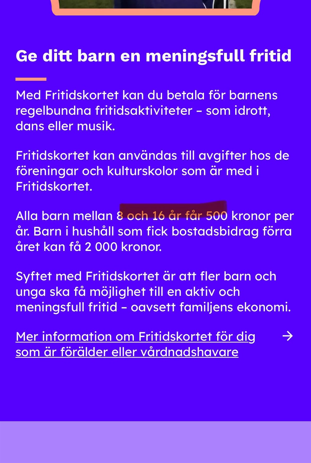 Vill bara förtydliga att skänka sitt Fritidskortet-stöd till lagkassan naturligtvis är HELT frivilligt, och är endast ett förslag på alternativ till att istället låta stödet brinna inne. Vad man väljer att använda stödet till bestämmer man såklart helt själv.