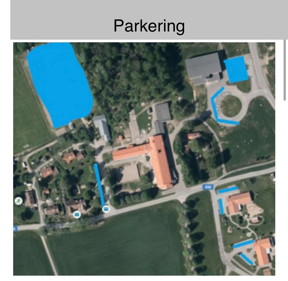Bifogar en karta där vi markerat upp platser där ni kan parkera. Var noga med att kontrollera ev.