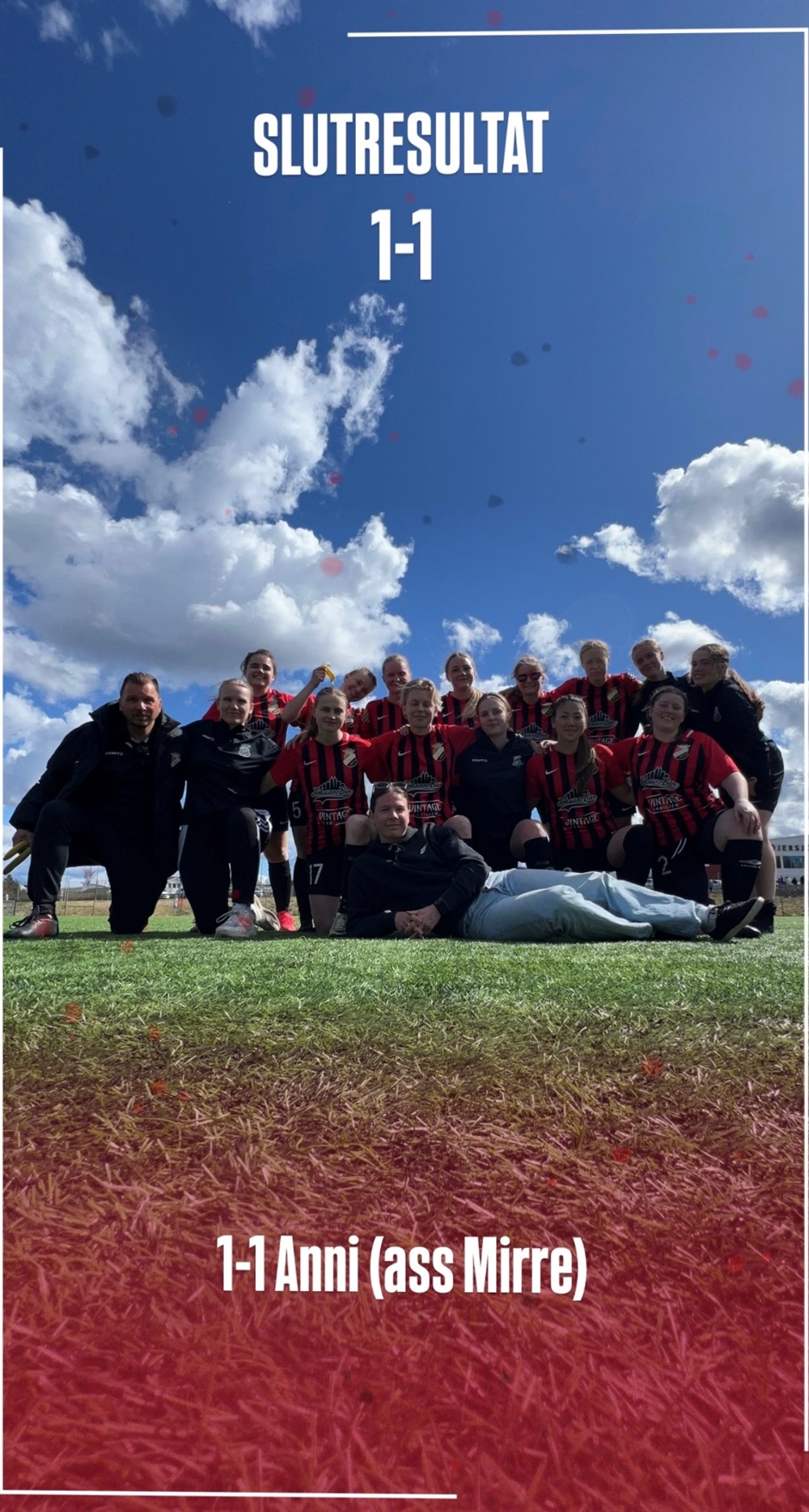 Det som imponerar mest är hur tjejerna svarar – vi fortsätter spela vårt spel och efter fint kombinationsspel kliver Anni fram och sätter välförtjänta 1–1! 🔥