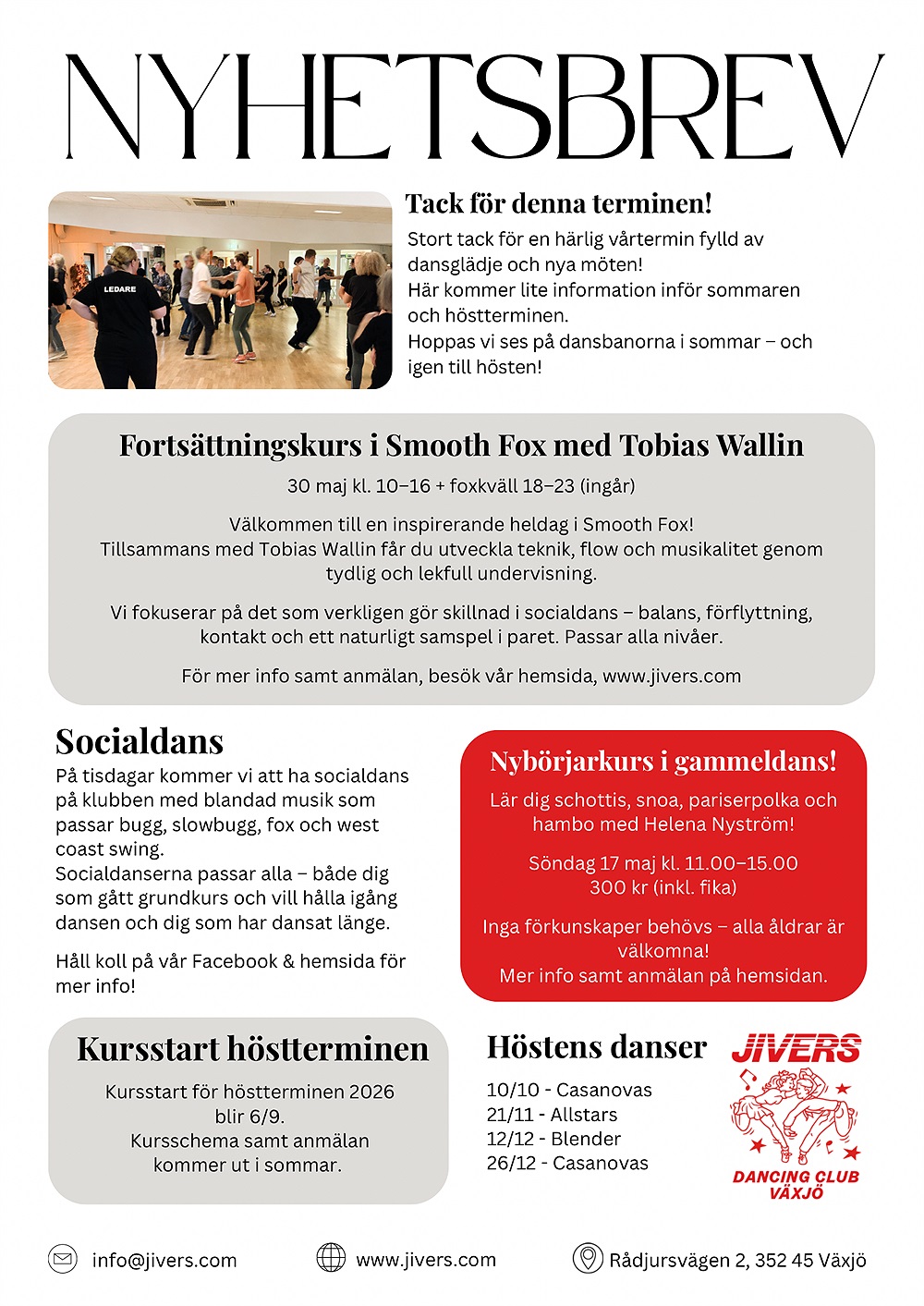 Här kommer vårt nyhetsbrev med information om kommande kurser och evenemang!