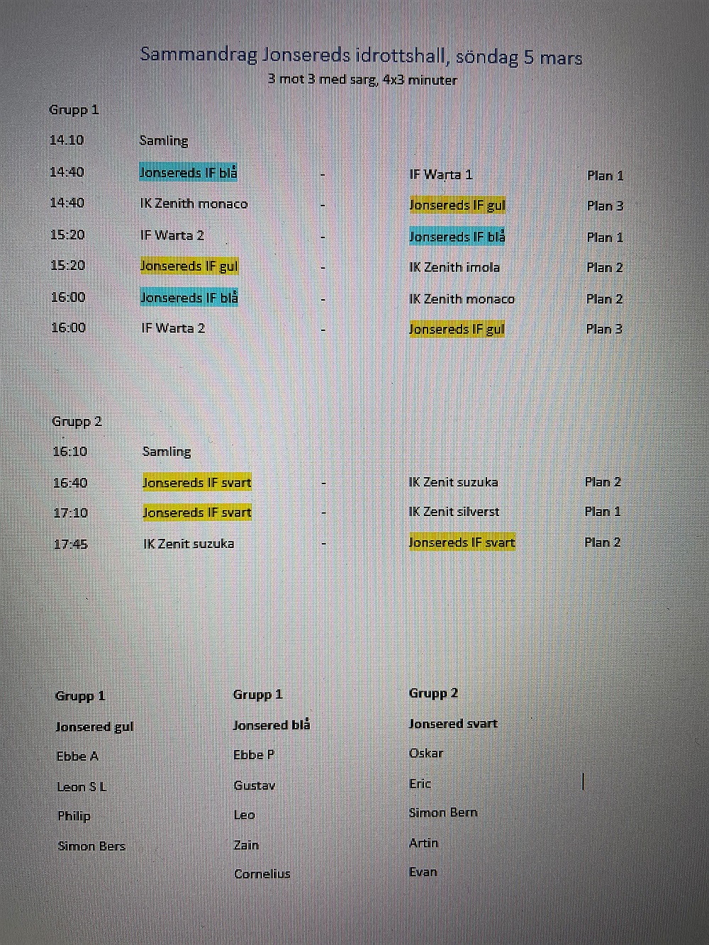 Här kommer lag och tider för söndag⚽️⚽️⚽️. Blir mycket speltid för alla😅. Vi har två lag i samma grupp så finns det föräldrar som vill hjälpa till vid sidan är det kanon🌟