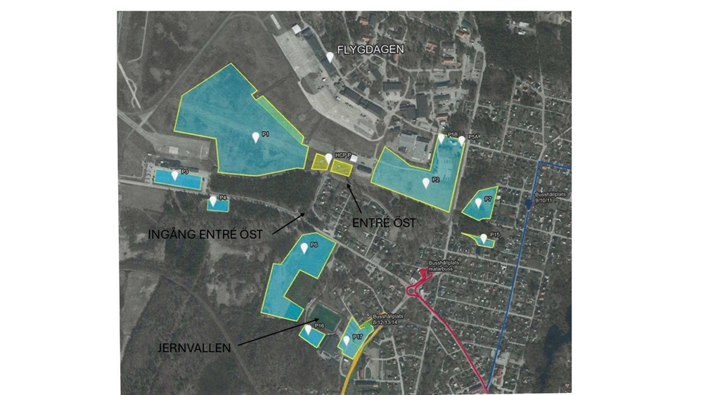 Se kartan ovan för var de olika parkeringarna är belägna.