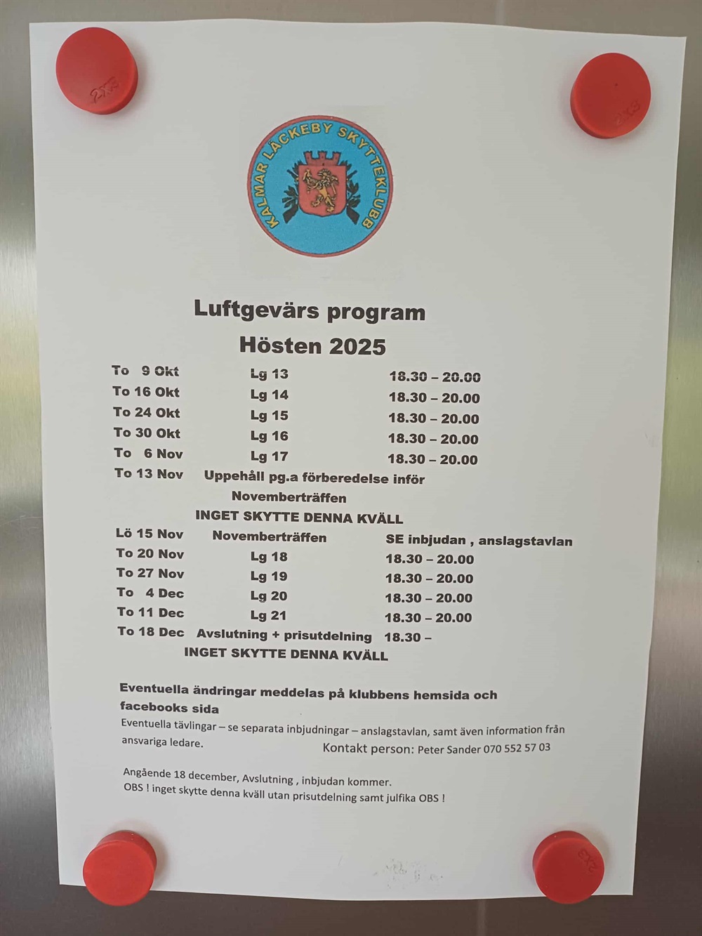 Varmt välkomna, gamla som nya skyttar till luftgevärsskytte i Skälby Logen.