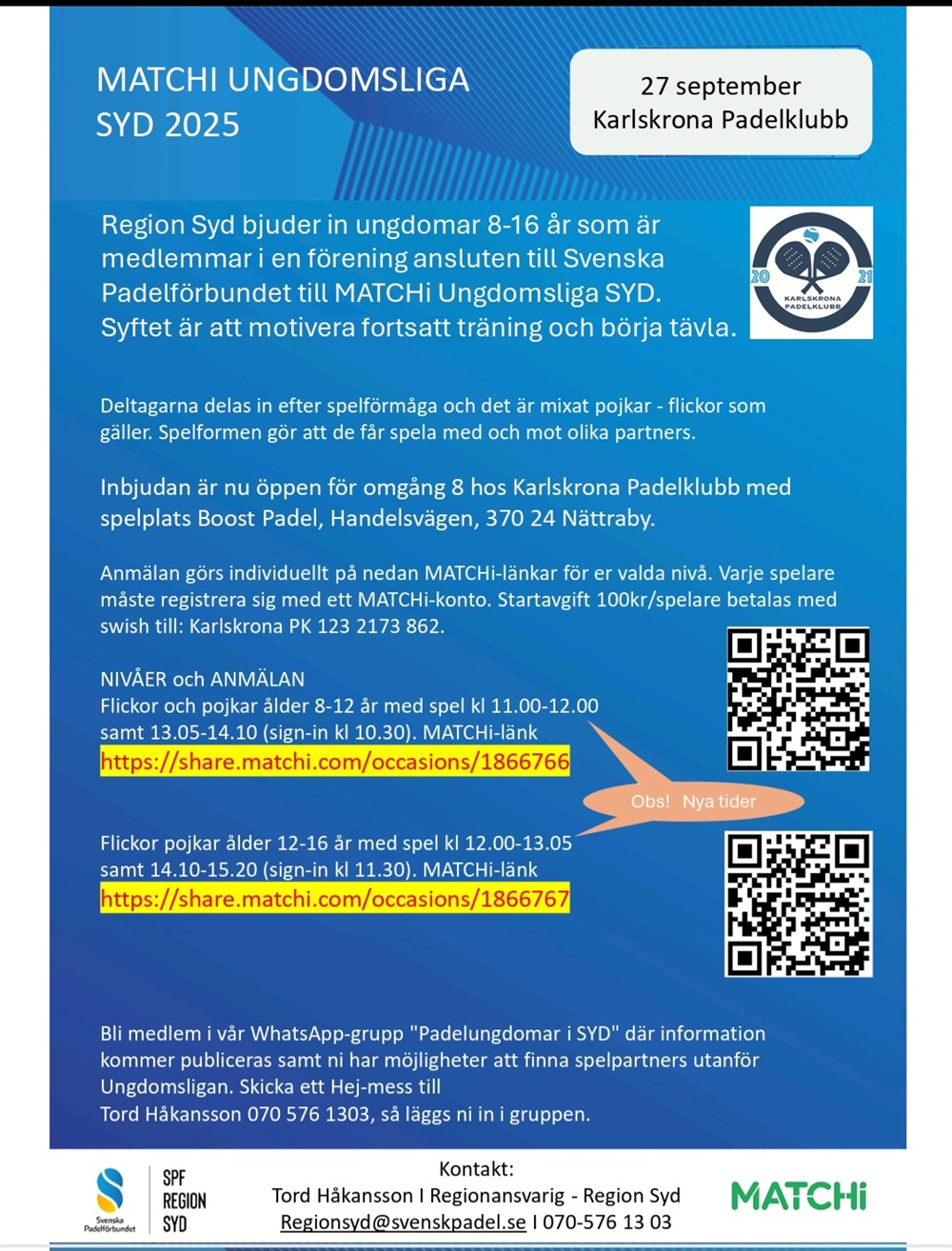 Hej! I år har vi äntligen tagit Ungdomsligan Syd till Karlskrona. 27 september kommer det ungdomar från hela södra Sverige till Boost Padel i Nättraby.