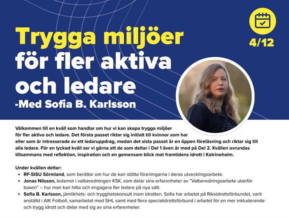 Välkommen till en kväll som handlar om hur vi kan skapa trygga miljöer för fler aktiva och ledare.