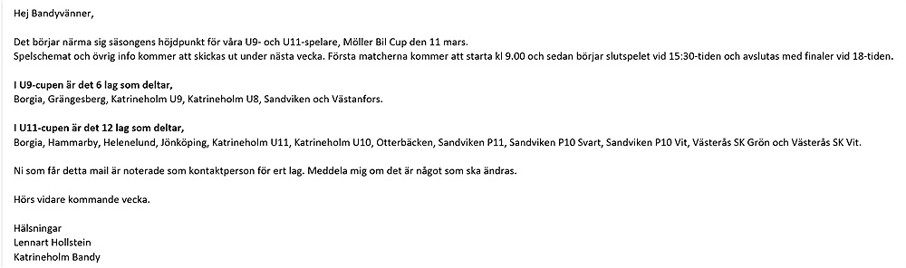 Bifogar en bild på lite info inför kommande Cup den 11 Mars!