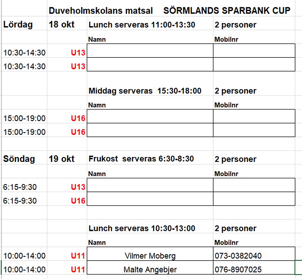 Här kommer Schema för vår bemanning vid Sörmlands Sparbank Cup.