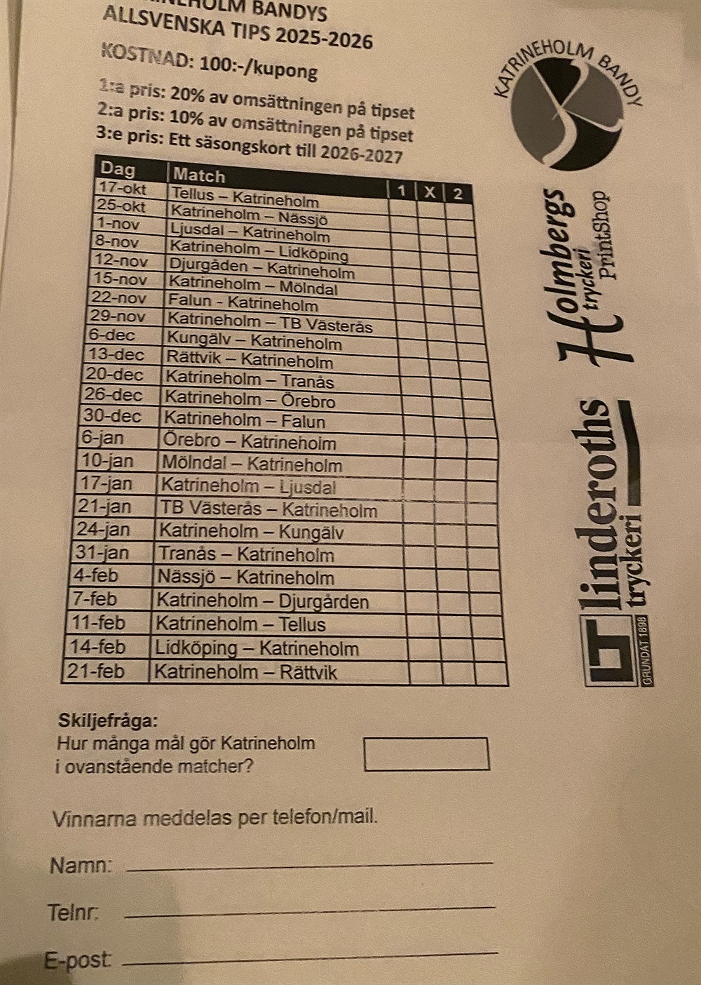 Föreningen vill ju som vanligt att vi engagerar nära och kära i det Allsvenska tipset. Varje spelare har två kuponger var. jag har delat ut till några idag.