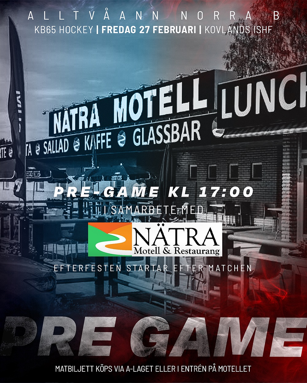 Kommande FREDAG 27/2 är det dags för vårt och samarbetspartnern @natramotell uppskattade Pre-Game och Efterfest igen 🔥