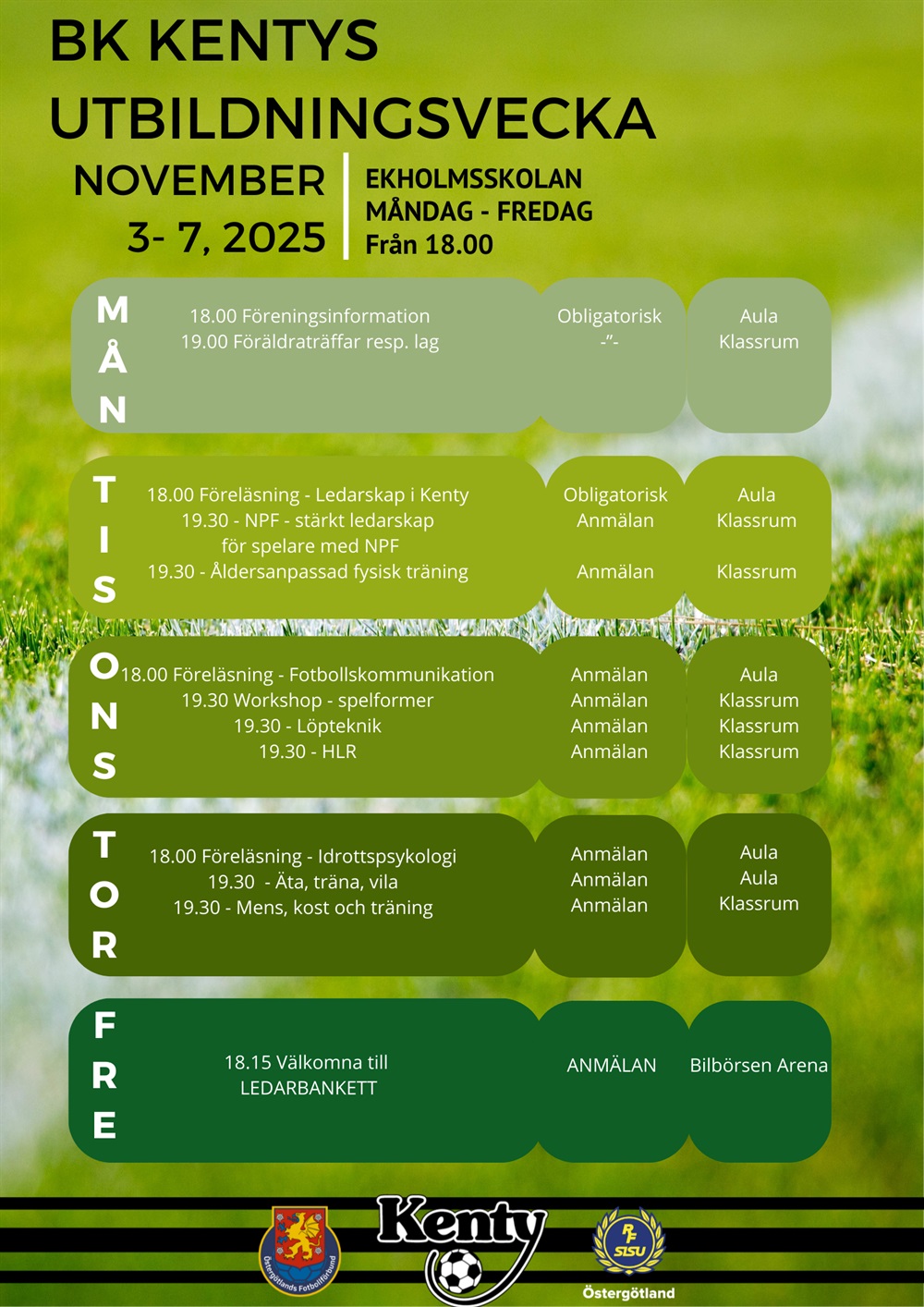 Nu närmar vi oss BK Kentys Utbildningsvecka 2025, här hittar du info inför veckan!