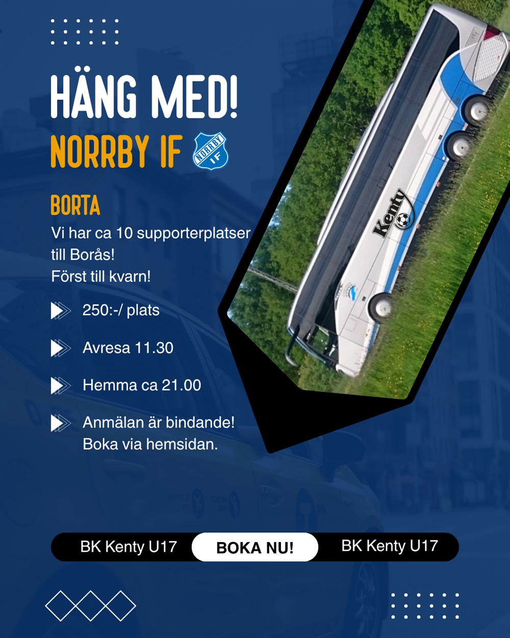 1) Du bokar din plats via ett SMS till Tobias 073-0537126, Ange namn på den som ska ha platsen.