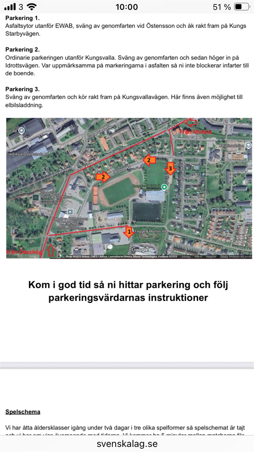 Vi kommer att spela på B-planen. Parkera med fördel på parkering 2 eller 3.