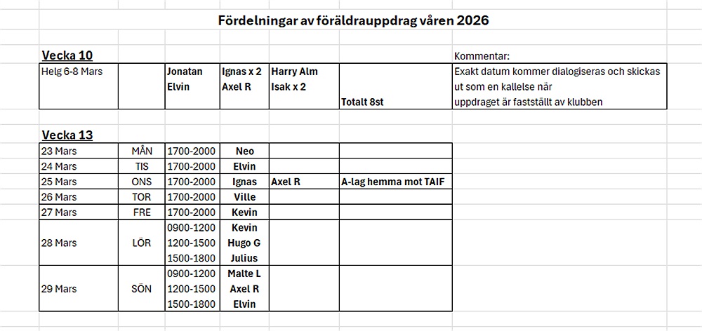 Kommande föräldrauppdrag A-pojk vår 2026