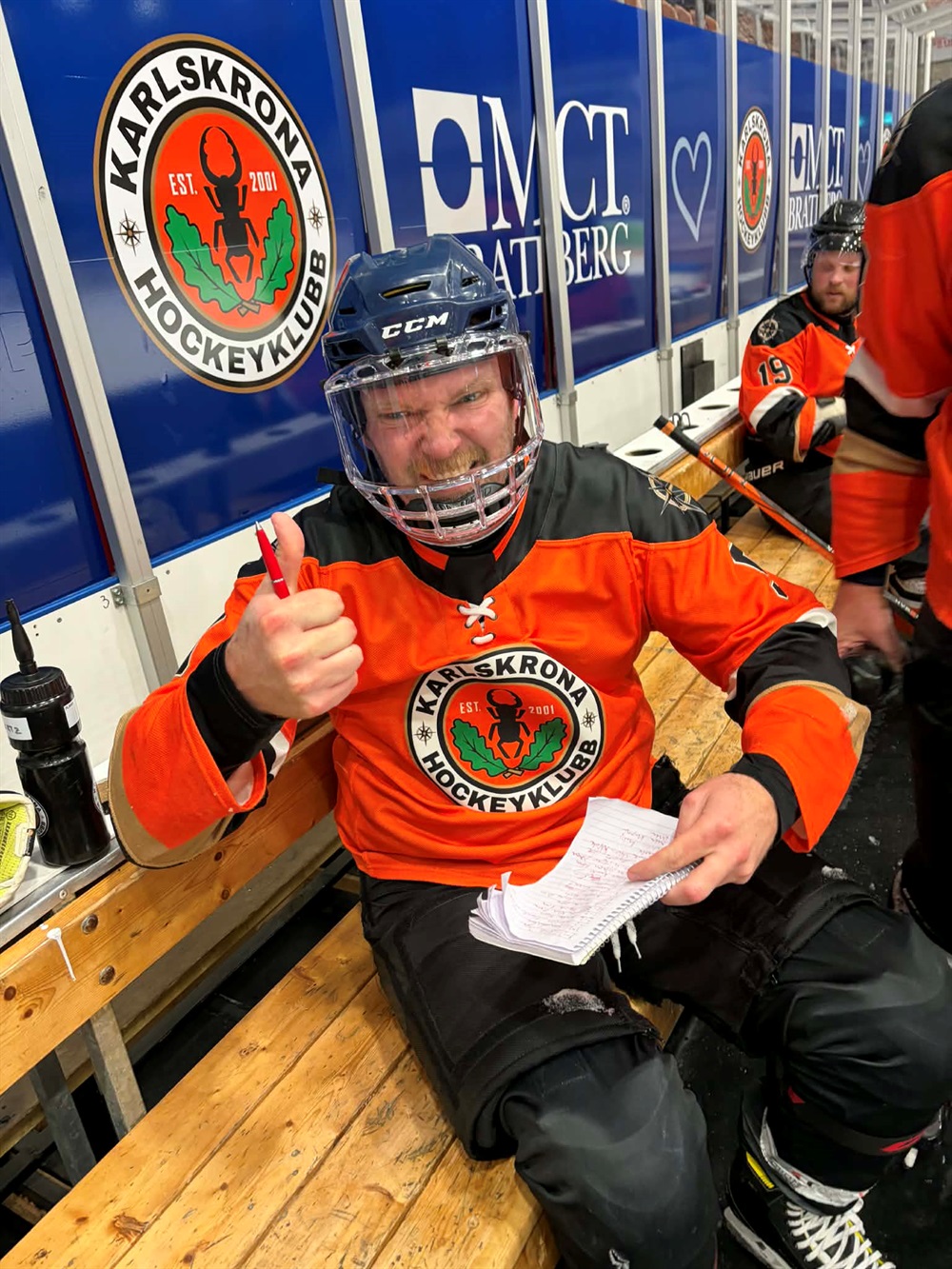 - Uffe och Mayertz var oerhört nära att ryka på veteranregeln "bara två blåa hjälmar på isen samtidigt", men vi såg genom fingrarna ikväll eftersom vi även har gett dispens till akvariespelarna. Får se om vi skärper till detta nästa vecka!