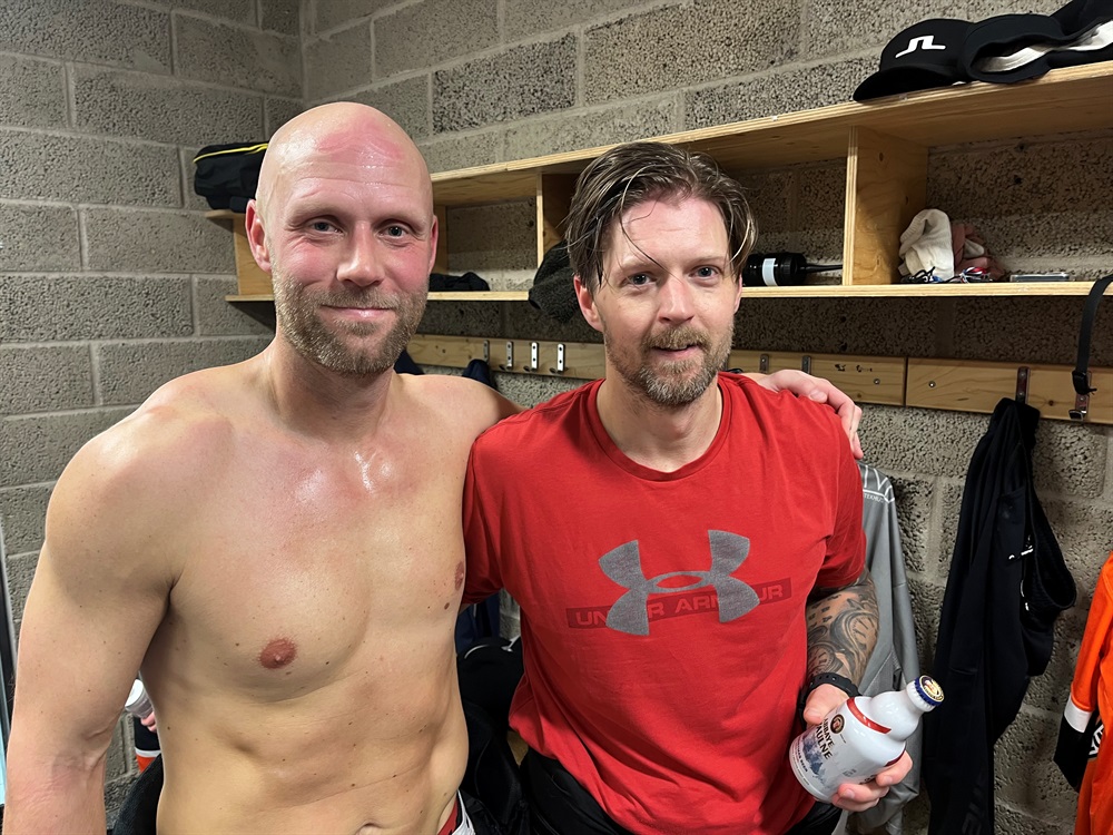 När det gäller kvällens showdown på isen kan man konstatera att det var en match med två ansikten. Fram till Vit 7-4-ledning var det möjligen ingen regelrätt Vit dominans, men åtminstone bra utdelning...och samtidigt storspelade Sigge i Vita kassen. Sedan vände det totalt och medan Palle spikade igen i Orange kassen visade Nicke och Silfverberg varför de är de enda i KHK Vets som inte behöver ha plånkan med sig när de går på Stars and Stripes. Det är som när Glenn Strömberg går på gatorna i Bergamo. Il capitano pröjsar aldrig ur egen ficka. Fy fasen alltså vilka lirare! Sannolikt kommer det att författas regeländringar som omöjliggör att dessa herrar spelar i samma lina framöver. Föräldragruppen har redan framfört sina synpunkter!