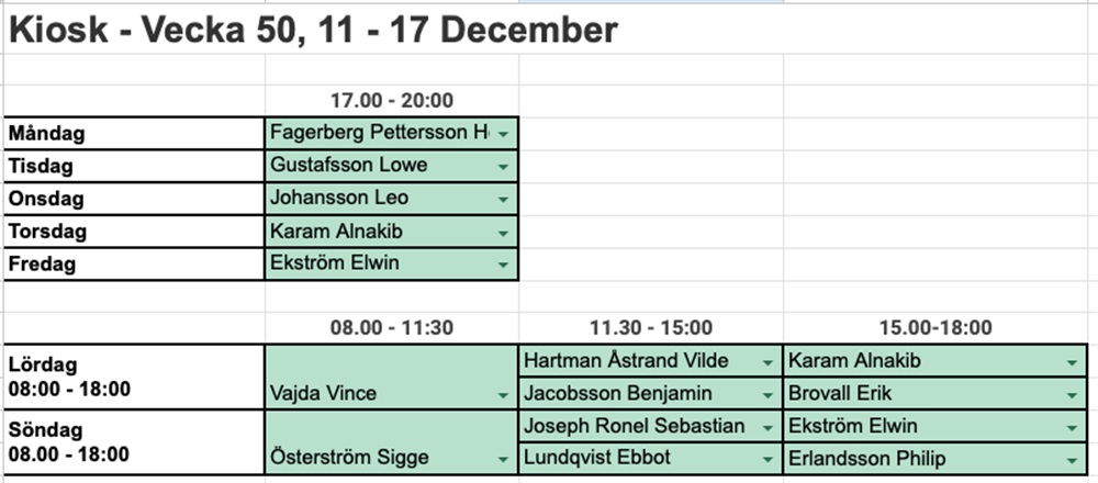 Hi, this is Ronel's dad. I will not be available on 14, 15, 16 and 17th. Is there anyone who could swap with my current timing of 11.30 to 17.00, 17 Dec?