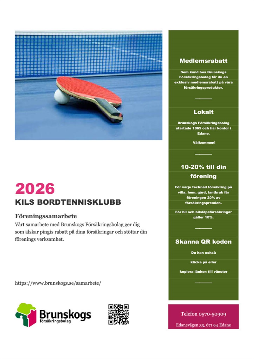 Vi fortsätter med vårat samarbete och tecknar ni en försäkring så är ni med och stöttar Kils bordtennisklubb