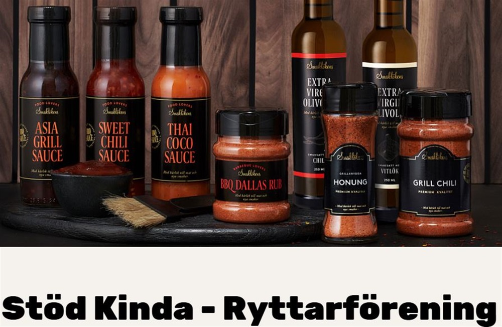 Upptäck ett brett utbud av baskryddor, kryddkvarnar, smaksatta olivoljor, grillkryddor och rubs. Stöd Kinda - Ryttarförening genom att köpa fina och uppskattade kryddboxar. Klicka er vidare till webbshopen och lägg er beställning. https://klasspengar.se/webbshop/?shop=MjY0NjQ0LDEwNDk1Mw==
