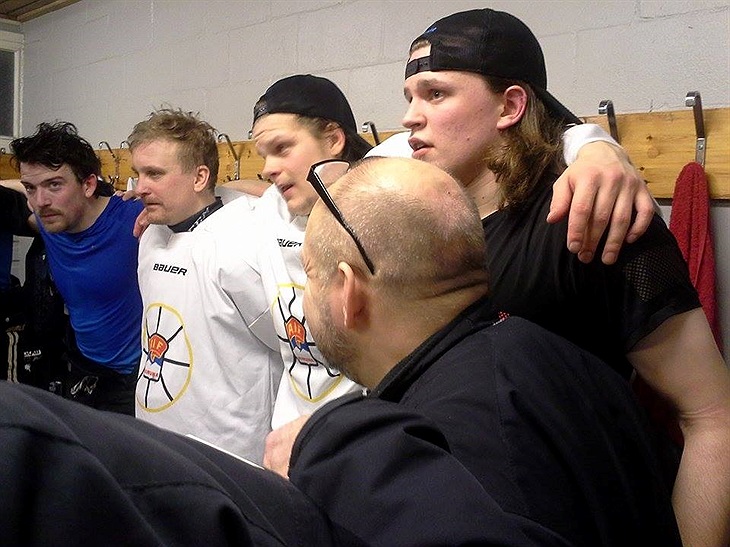 Mikko, J Fredriksson, Hammar, Taavo samt coach Sipuri efter 7-5 mot Boden