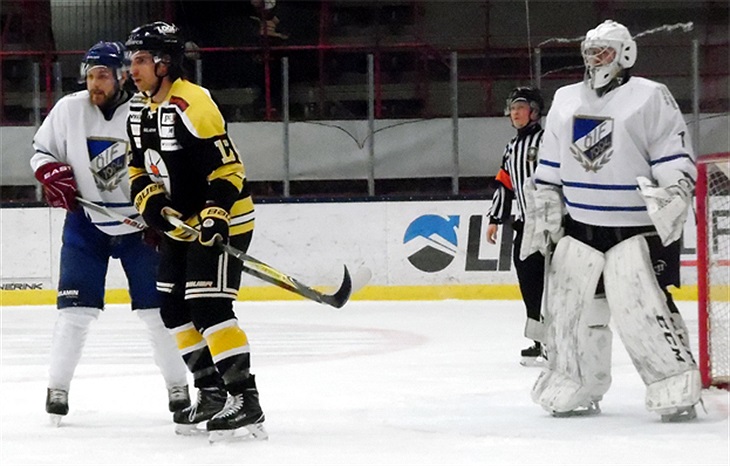 Premiär för alltvåan när Överkalix gästade Lombia. Phil Bushbacher debuterade i AIF-tröjan och inledde med att sätta 1-0 vid sin första puckkontakt efter 53 sekunder. Första perioden var annars ringrostig och det märktes att det var en månad sedan man matchade senast. AIF malde dock på och Albin Pettersson rakade in tvåan i power play ensam i slottet. Skotten 16-8 till de svartgula.
