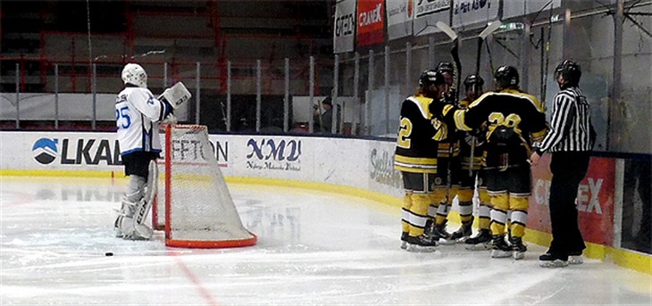 Sista perioden spelades mest av och Viktor Lund fortsatte skjuta vilket gav resultat fram till 9-2 i power play. Fler mål blev det inte och skotten blev totalt 60-29. En kollektivt mycket bra insats av AIF där vi kan nämna Simon Hammar, Oskar Fredriksson, Jonathan Mettävainio och inte minst Viktor Lund som under aftonen gjorde hattrick, tre passningspoäng samt hann med ett gruff.