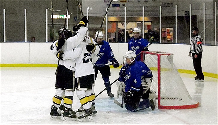 AIF-jubel i Kopparhallen. David Lund har petat in 3-0.