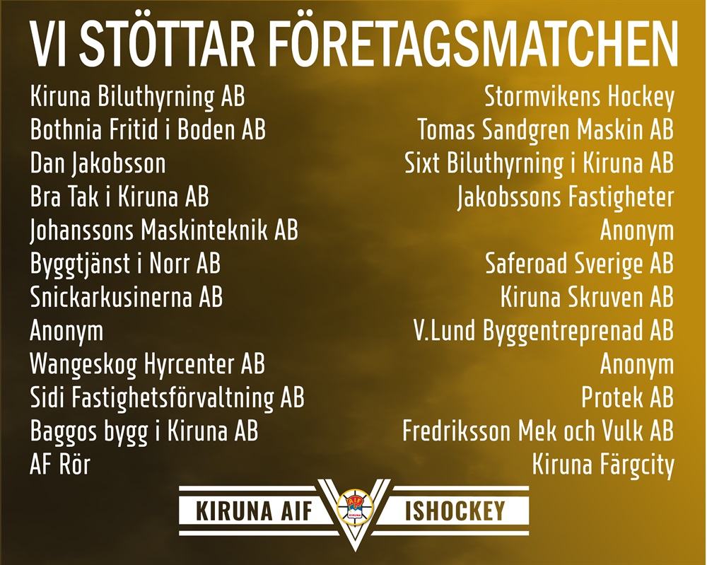 Tack till alla företag och privatpersoner som är med och bjuder Kirunaborna på fri entré till den viktiga matchen mot IFK Arvidsjaur nu på lördag klockan 18.
